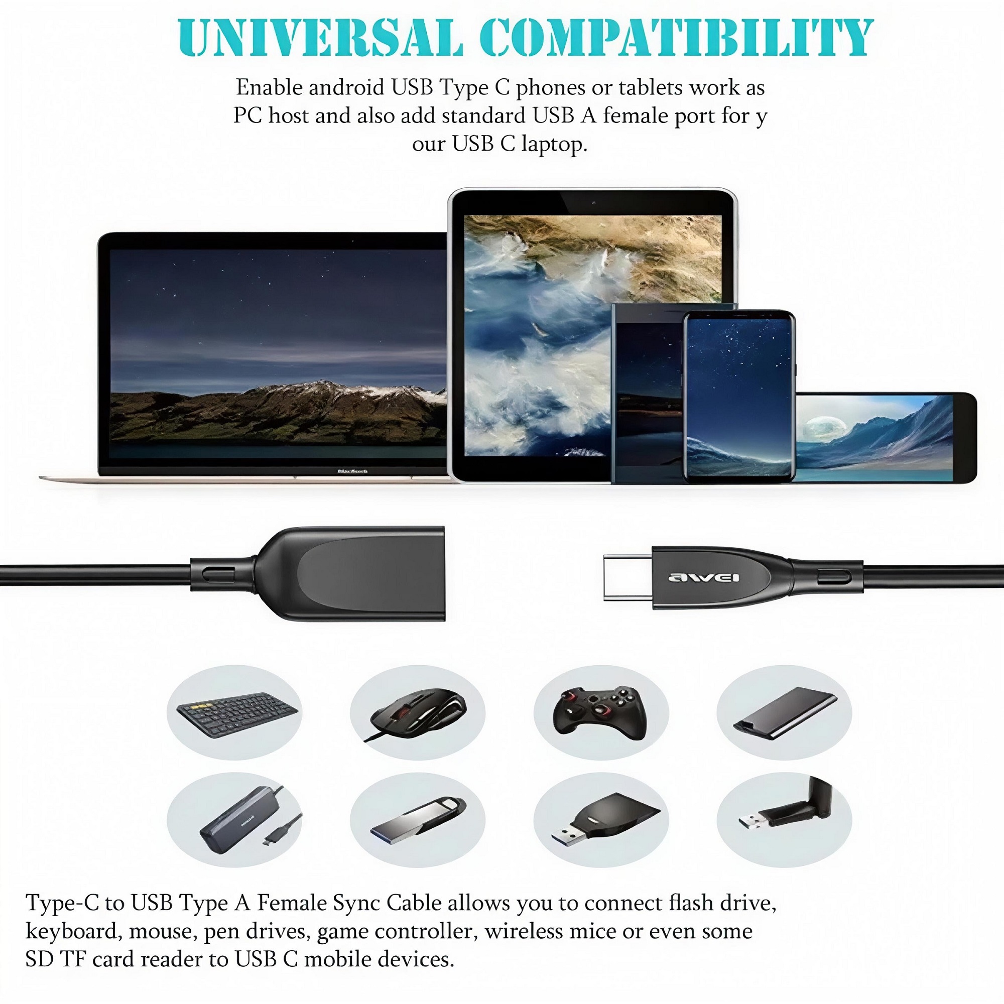 - پورت USB-C قابلیت اتصال به انواع لپ تاپ و تبلت ، آیفون 15 به بالا و انواع گوشی های سامسونگ ، شیائومی و هوآوی و سونی و پیکسل و … را دارا میباشد
