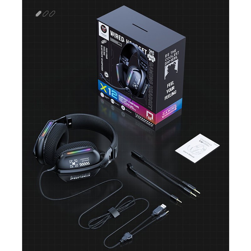 طراحی ارگونومیک هدست X12 با پدهای نرم و هدبند قابل تنظیم، راحتی طولانیمدتی را تضمین میکند و از خستگی گوشها در جلسات طولانی بازی جلوگیری مینماید. استفاده از نورپردازی RGB روی گوشیها نیز جلوهای مدرن و گیمینگ به ظاهر آن بخشیده است.