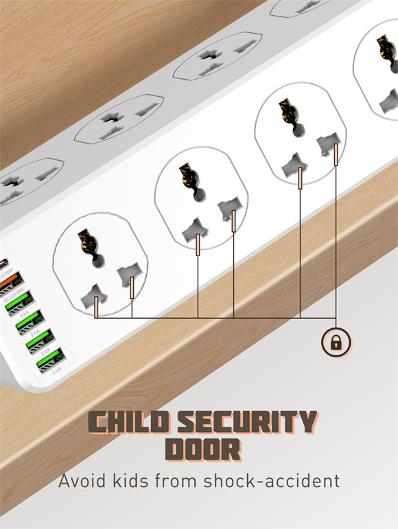 چند راهی برق و شارژر الدینیو مدل SC10610 یکی از وسایلی است که علاوه بر اینکه تعدادی کافی از پریز را در اختیار شما قرار میدهد، قابلیتهای دیگری را نیز در اختیار شما میگذارد، همچنین به دلیل رعایت استانداردهای امنیتی، استفاده از آن به شما اطمینان خاطر میدهد. در ابتدا باید اشاره کرد که مواد رسانای به کار رفته در چند راهی برق الدینیو بسیار با کیفیت بوده و از جنس مس هستند. به همین علت جریان برق به خوبی درون این چندراهی عبور میکند و اتلاف انرژی نیز به حداقل خود میرسد. این چند راهی شامل 10 پریز برق، 5 پورت USB و یک پورت Type C است. توان کلی این چند راهی 2500 وات است. همچنین جنس بدنه تا دمای 850 درجه سلسیوس در برابر دما مقاومت دارد. طراحی مثلثی شکل چندراهی نیز استفاده از آن را بسیار راحتتر میکند. در قسمت زیرین LDNIO SC10610 پدهای سیلیکونی قرار داده شدهاند که مانع از لیز خوردن آن میشود. برای اینکه محدودیت استفاده کمتری داشته باشید و بتوانید انواع دوشاخهها و سه شاخهها را به این چندراهی متصل کنید، سوراخهای پریز تعبیه شده در هر سمت، با سمت دیگر متفاوت است و جهتی بر عکس هم دارند. همچنین یک کلید روی بدنه چندراهی قرار گرفته است که امکان قطع و وصل کردن جریان برق را ایجاد میکند. البته در کنار آن باید به این مورد نیز اشاره کرد که پریزها دارای محافظ کودک نیز هستند. ولتاژ ورودی این دستگاه برابر با 100V~250V است و حداکثر شدت جریان آن هم 10 آمپر است. تعداد پورتهای USB قرار داده شده روی این پریز برابر با 6 عدد است. 4 پورت دارای فناوری Auto ID هستند و ولتاژ و شدت جریان خروجی آنها برابر با 5V~2.4A است که حداکثر توان خروجی آنها نیز برابر با 12 وات میشود. فناوری Auto ID نیز به این شرح است که ولتاژ و شدت جریان خروجی با توجه به وضعیت دستگاه به آن وارد میشود تا از آسیب دیدن آن جلوگیری شود. یکی از پورتهای USB از تکنولوژی QC3.0 پشتیبانی میکند، با توجه به این مورد، شما امکان این را دارید که گوشی و دستگاههای خود را با سرعت بالاتری شارژ کنید. ولتاژ و شدت جریان خروجی از این درگاه برابر با: 5V~3A / 9V~2A / 12V~1.5A است. حداکثر توان خروجی از این درگاه برابر با 18 وات است. یک پورت Type C نیز در کنار درگاههای USB قرار داده شده است که از استاندارد PD پشتیبانی میکند و دارای حداکثر توان خروجی 33 وات میباشد .