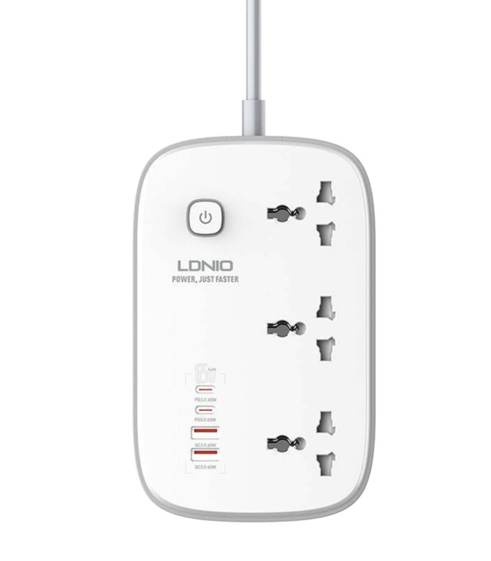 چند راهی برق و شارژر الدینیو مدل SC3416 یکی از وسایلی است که علاوهبر اینکه تعدادی کافی از پریز را در اختیار شما قرار میدهد، قابلیتهای دیگری را نیز در اختیار شما میگذارد، همچنین به دلیل رعایت استانداردهای امنیتی، استفاده از آن به شما اطمینان خاطر میدهد. در ابتدا باید اشاره کرد که مواد رسانای به کار رفته در چند راهی برق الدینیو بسیار با کیفیت بوده و از جنس مس هستند. به همین علت جریان برق به خوبی درون این چندراهی عبور میکند و اتلاف انرژی نیز به حداقل خود میرسد. این چند راهی شامل 3 پریز برق، 2 پورت USB و 2 پورت Type C است. توان کلی این چند راهی 3250 وات است. همچنین جنس بدنه تا دمای 850 درجه سلسیوس در برابر دما مقاومت دارد.
