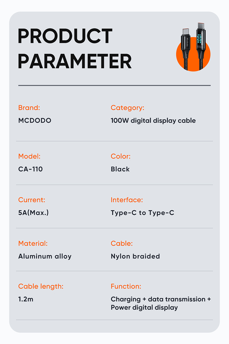 با کابل شارژ و انتقال داده تایپ سی به تایپ سی مک دودو مدل Mcdodo CA-1100، از شارژ سریع و انتقال دادههای خود با اطمینان کامل لذت ببرید. نمایشگر دیجیتال این کابل، روند شارژ را لحظهبهلحظه به شما نشان میدهد. با طول 120 سانتیمتر، آزادی حرکت بیشتری دارید. انتخابی هوشمندانه برای دستگاههای مدرن شما!