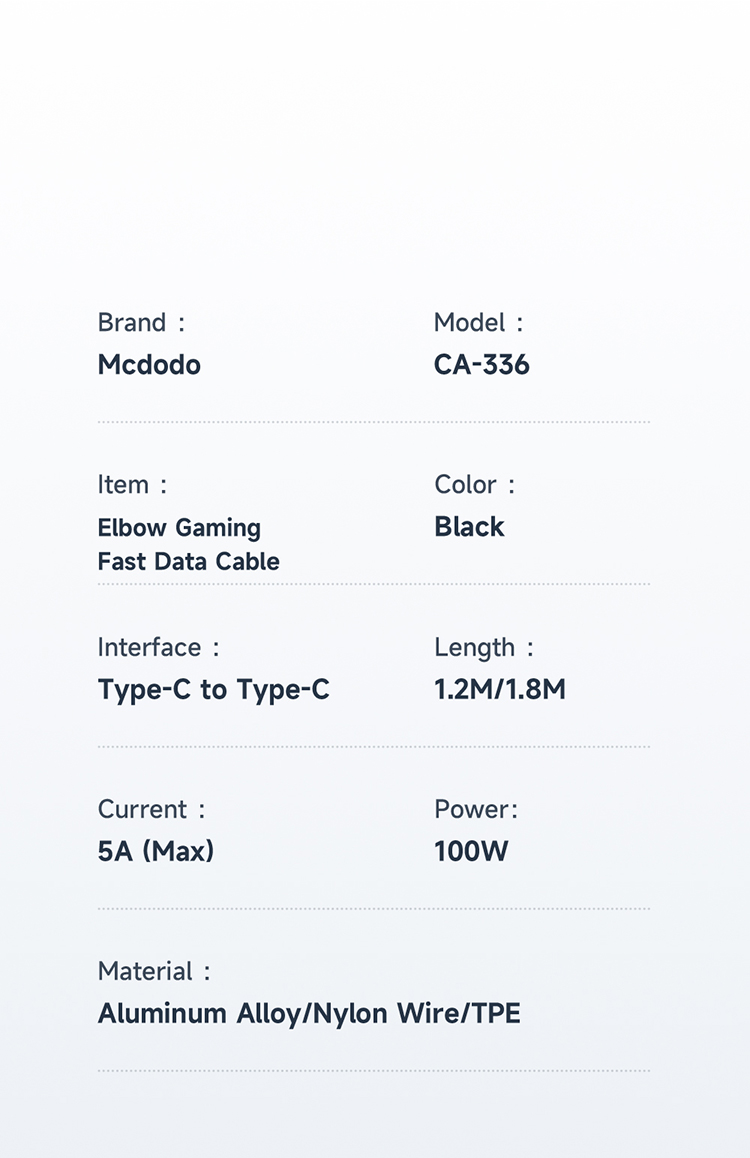 با کابل تایپ سی 65 واتی مک دودو مدل Mcdodo CA-3361 با طول 1.8 متر، سرعت و قدرت شارژ را به اوج برسانید! طراحی مقاوم و کیفیت بالا، این کابل را برای استفاده روزمره و سفر ایدهآل کرده است. اگر به دنبال کارایی و دوام هستید، این محصول انتخابی بینظیر برای شماست. تجربه یک شارژ سریع و مطمئن را از دست ندهید!