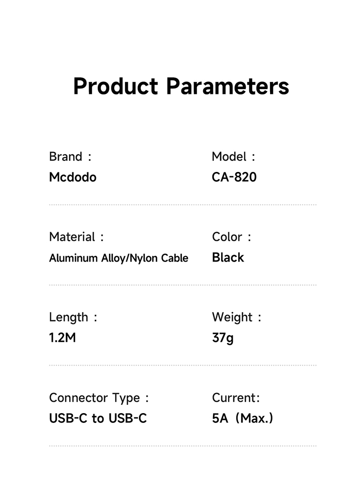 معرفی کابل تایپ سی 100 واتی مک دودو مدل CA-8200