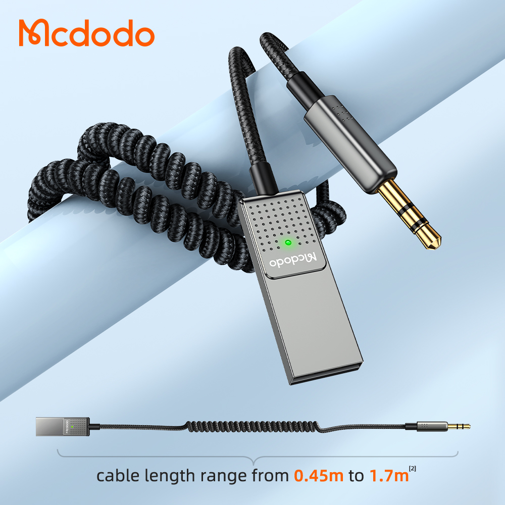 اگر از نبود گزینه بلوتوث روی ضبط ماشین یا اسپیکر خانه خود ناراحت هستید و نگران هستید که یک ضبط بلوتوثدار جدید چقدر برایتان هزینه برخواهد داشت و دوست دارید، آهنگهای روی گوشی خود را با کیفیت بالا روی ضبط خودرو یا اسپیکرتان پخش کنید، ما به شما «گیرنده بیسیم AUX مدل CA-8700 مک دودو» را پیشنهاد میدهیم. میتوانید با این گیرنده و با کاربری بسیار ساده، اسپیکر، ضبط خودرو و یا هر دستگاه پخش دیگری که ورودی AUX دارد را به یک پخش بیسیم تبدیل کرده و بهراحتی موسیقیهای مورد علاقه خود را از طریق گوشی همراهتان، روی آنها پخش کنید. کوچکی و سبکی گیرنده CA-8700، این امکان را به شما میدهد که به راحتی همهجا آنرا بههمراه داشته باشید. چیپ با کیفیت بالا و مصرف انرژی بسیار پایین، صدایی با کیفیت و پایدار را تا فاصله 5 متر برایتان به ارمغان میآورد. برق آن از طریق پورت USB روی دستگاه تامین میشود. میکروفن داخلی آن، امکان تماس هندزفری HD را در هنگام رانندگی یا کار، برایتان فراهم میکند. با کانکتور آبکاری شده با طلا دیگر نگران اکسیداسیون و افت کیفیت صدا نخواهید بود. کابل تلفنی مانند آن که در حالت طبیعی 45 سانتیمتر بوده تا 120 سانتیمتر قابلیت کشسانی دارد. همچنین این کابل از مواد TPE ساخته شده که سازگار با محیط زیست میباشد.