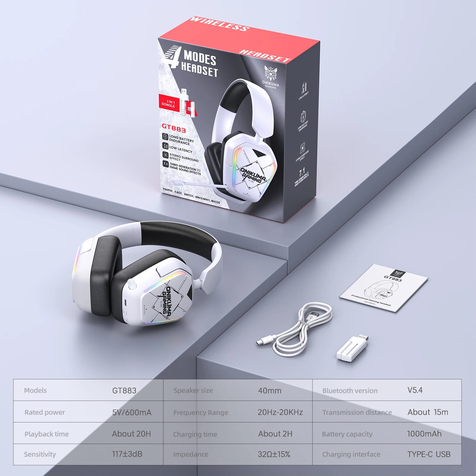 هدفون ONIKUMA GT883 یک هدفون مخصوص بازی است که برای گیمرهایی طراحی شده است که به دنبال حداکثر کارایی، راحتی و استایل هستند. این هدفونها با چهار حالت اتصال (۲.۴G USB، ۲.۴G Type-C، بلوتوث ۵.۴ و سیمی) سازگاری جهانی و اتصال پایدار را به طیف وسیعی از دستگاهها ارائه میدهند. GT883 با صدای پویا، طراحی ارگونومیک، نور پس زمینه RGB و تا 60 ساعت کارکرد ( RGB خاموش )، عملکرد بالا را با طراحی مدرن ترکیب میکند - انتخابی ایدهآل برای بازی و استفاده روزمره.